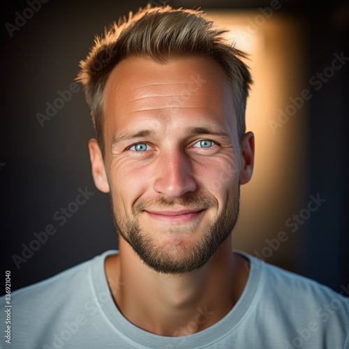 © Andrii IURLOV, Fototapeta premium Portrait Happy Smile Man under photo studio light