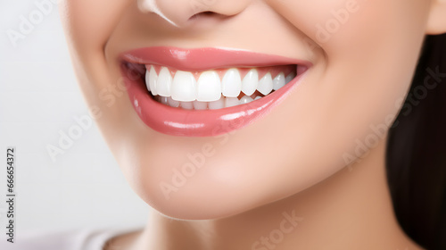 © NOOPIAN, Fototapeta premium Portrait has a woman smiling with beautiful white teeth showing half of her face, taking care of her teeth.