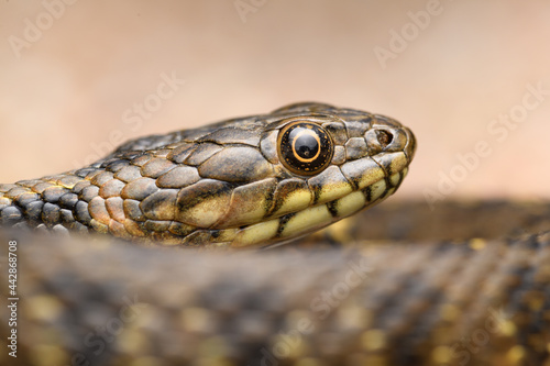 © pedro, Obraz premium Portrait head Water snake (Natrix maura) in spain