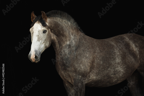 © Дарья Ералева, Obraz premium Portrait horse black background