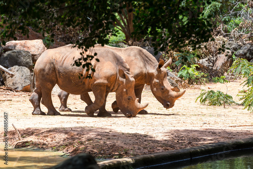 © kasipat, Fototapeta premium portrait image white rhinoceros in Nakhon Ratchasima Zoo