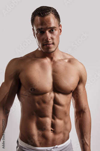 © Fxquadro, Fototapeta premium Portrait in studio of muscular man.