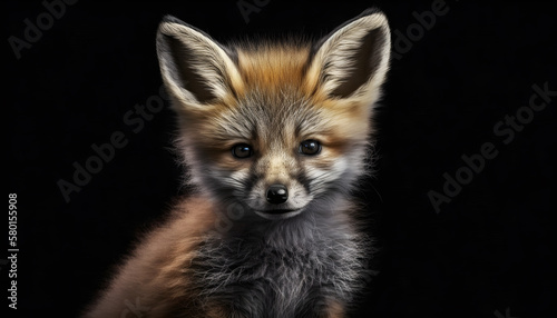 © Artistic, Fototapeta premium Portrait of a baby fox on a black background generative ai