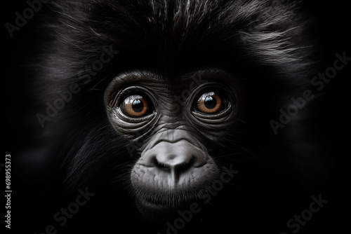 Fototapeta premium portrait of a baby gorilla looking at the camera on black background