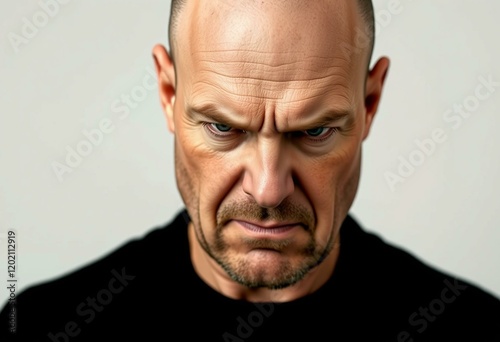 © iushakovsky, Obraz premium Portrait of a bald man with a scowl