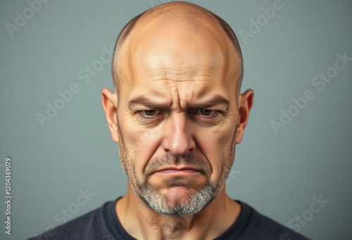 © iushakovsky, Obraz premium Portrait of a bald man with a scowl