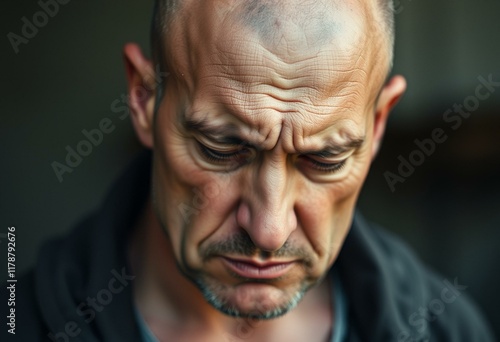 © iushakovsky, Obraz premium Portrait of a bald man with a somber expression