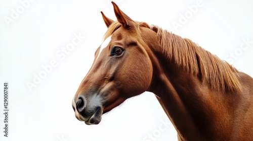 © 路加 石, Fototapeta premium Portrait of a bay horse, soft light, white background, showcasing elegance and calm presence.