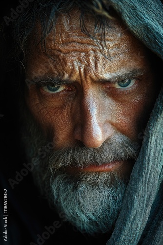 © Ева Поликарпова, Fototapeta premium Portrait of a bearded man, perfect for editorial or commercial use