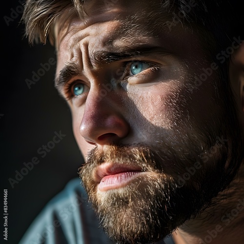 © Molang Visual, Obraz premium Portrait of a Bearded Man with Blue Eyes