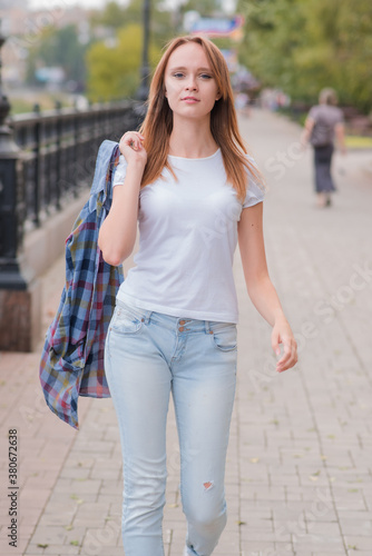 Fototapeta premium Portrait of a beautiful and happy girl outdoors