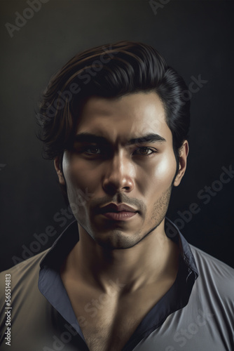 Fototapeta premium Portrait of a beautiful asian man, handsome portrait. Generative ai.