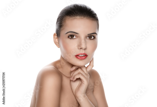 Fototapeta premium Portrait of a beautiful brunette on a white background