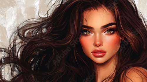 © arif, Fototapeta premium Portrait of a beautiful brunette woman with long wavy hair