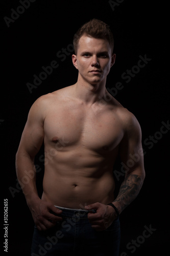 Fototapeta premium portrait of a beautiful fashionable strong man with a bare torso