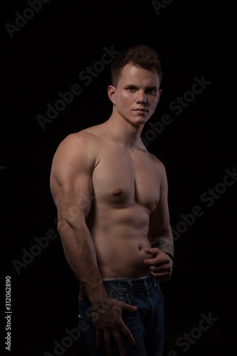 Fototapeta premium portrait of a beautiful fashionable strong man with a bare torso