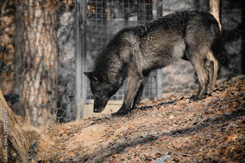 © Barbara C, Obraz premium portrait of a beautiful furry black wolf