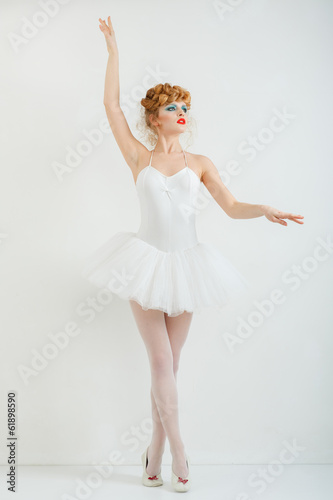 Naklejka premium Portrait of a beautiful girl with fashion makeup - red lips, sty
