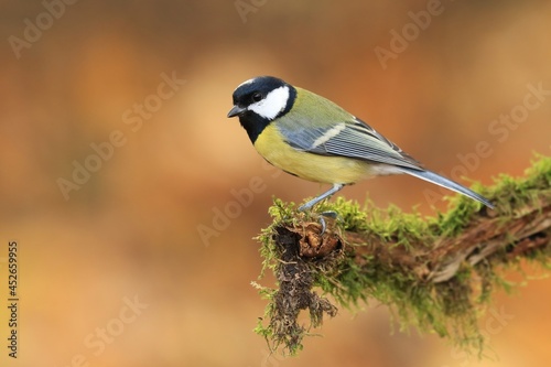 © Monikasurzin, Obraz premium Portrait of a beautiful great tit. Titmouse in the nature habitat. Parus major.