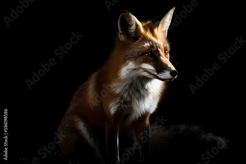 Fototapeta premium Portrait of a beautiful red fox on a contrasting black background - Generative AI