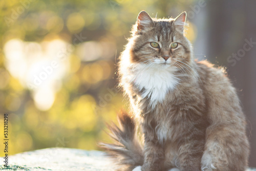Naklejka premium portrait of a beautiful siberian cat in nature