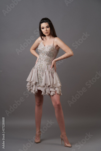 © Gecko Studio, Naklejka premium Portrait of a beautiful woman in trendy dress. Young brunette woman