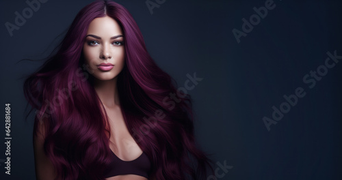 Fototapeta premium Portrait of a beautiful woman with long purple hair