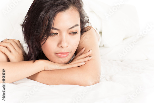 © Nonwarit, Fototapeta premium Portrait of a beautiful young woman in bed