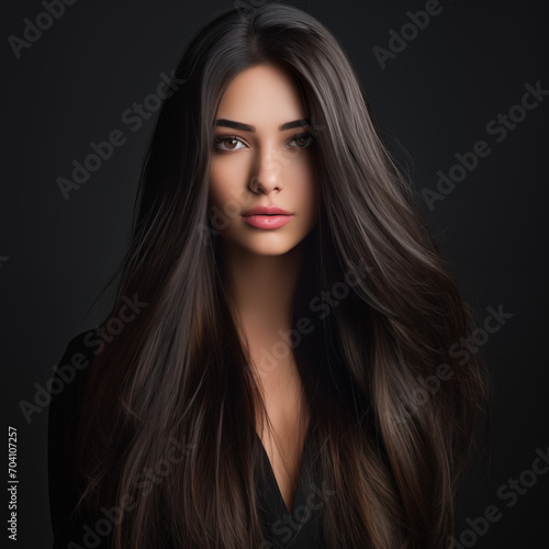 Fototapeta premium Portrait of a beautiful young woman with elegant long hair and natural makeup.