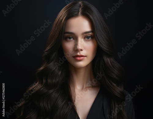 © ลลิดา ไชยศรีษะ, Fototapeta premium Portrait of a Beautiful Young Woman with Long Wavy Brown Hair