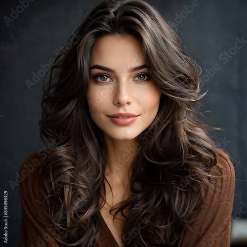 Fototapeta premium Portrait of a Beautiful Young Woman with Pristine Skin, Highlighting Face...