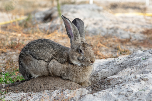 Fototapeta premium Portrait of a big beautiful rabbit in the yard