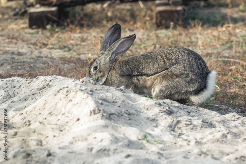Fototapeta premium Portrait of a big beautiful rabbit in the yard