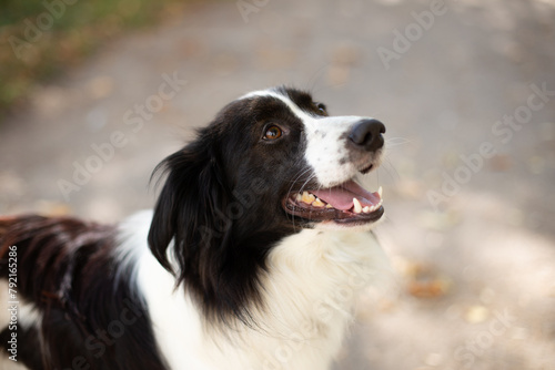 © Irina, Fototapeta premium Portrait of a black and white shaggy dog.