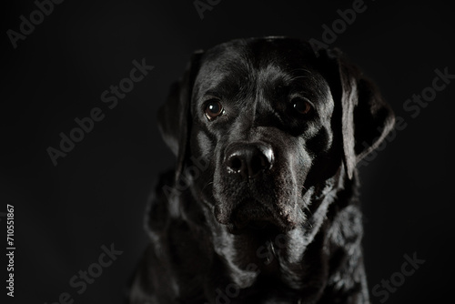 Fototapeta premium portrait of a black labrador on a black background in a low key