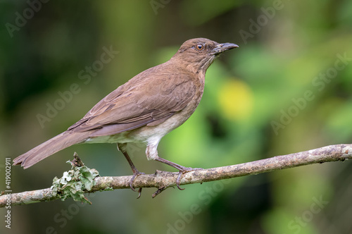 © J Esteban Berrio, Fototapeta premium Portrait of a blackbird on a branch with mushrooms