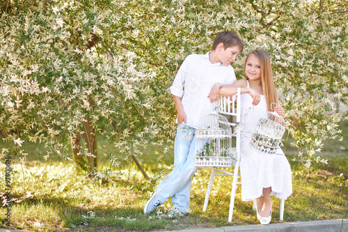 © zagorodnaya, Fototapeta premium Portrait of a boy and girl in summer