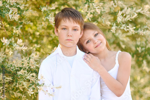 © zagorodnaya, Fototapeta premium Portrait of a boy and girl in summer