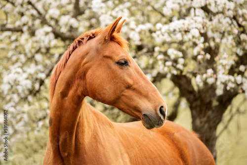 © Stefanie, Obraz premium portrait of a brown horse white in spring