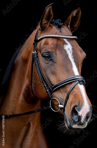 © Gustav, Fototapeta premium Portrait of a Brown Horse with a Black Bridle