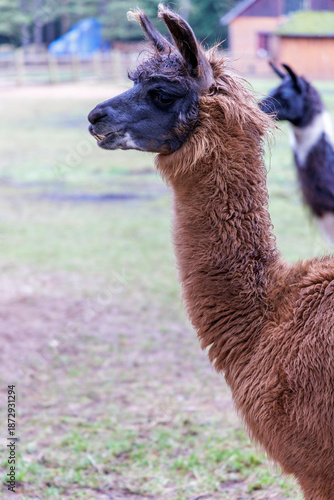 © Jorens, Fototapeta premium Portrait of a Brown Llama on a Farm