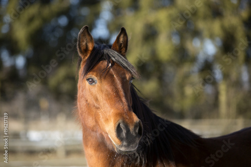 © BirgitKorber, Obraz premium Portrait of a brown mare in winter
