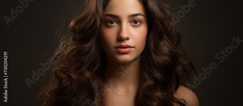Fototapeta premium Portrait of a brunette girl with gorgeous fluffy hair