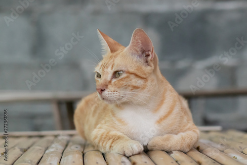 © kwanruan, Naklejka premium portrait of a cat, cat lying on the table