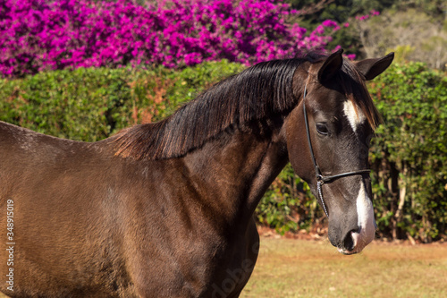 © RENAN, Fototapeta premium Portrait of a chestnut horse in a field