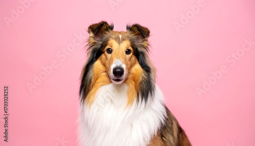 © Fajar, Fototapeta premium Portrait of a Collie against a pink background