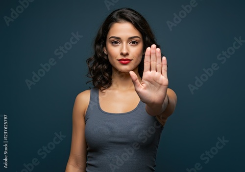 © Ghaniss, Fototapeta premium portrait of a confident woman showing stop gesture