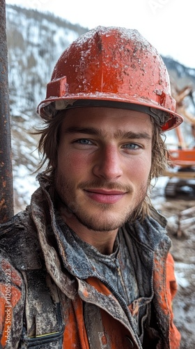 © dwphtra, Fototapeta premium Portrait of a Construction Worker in Winter Landscape