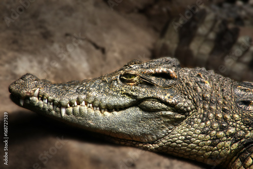 Fototapeta premium Portrait of a crocodile, one of the most dangerous hunters captivated in a zoo.