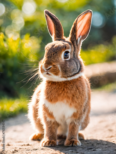 Fototapeta premium Portrait of a cute red rabbit in the garden, close-up